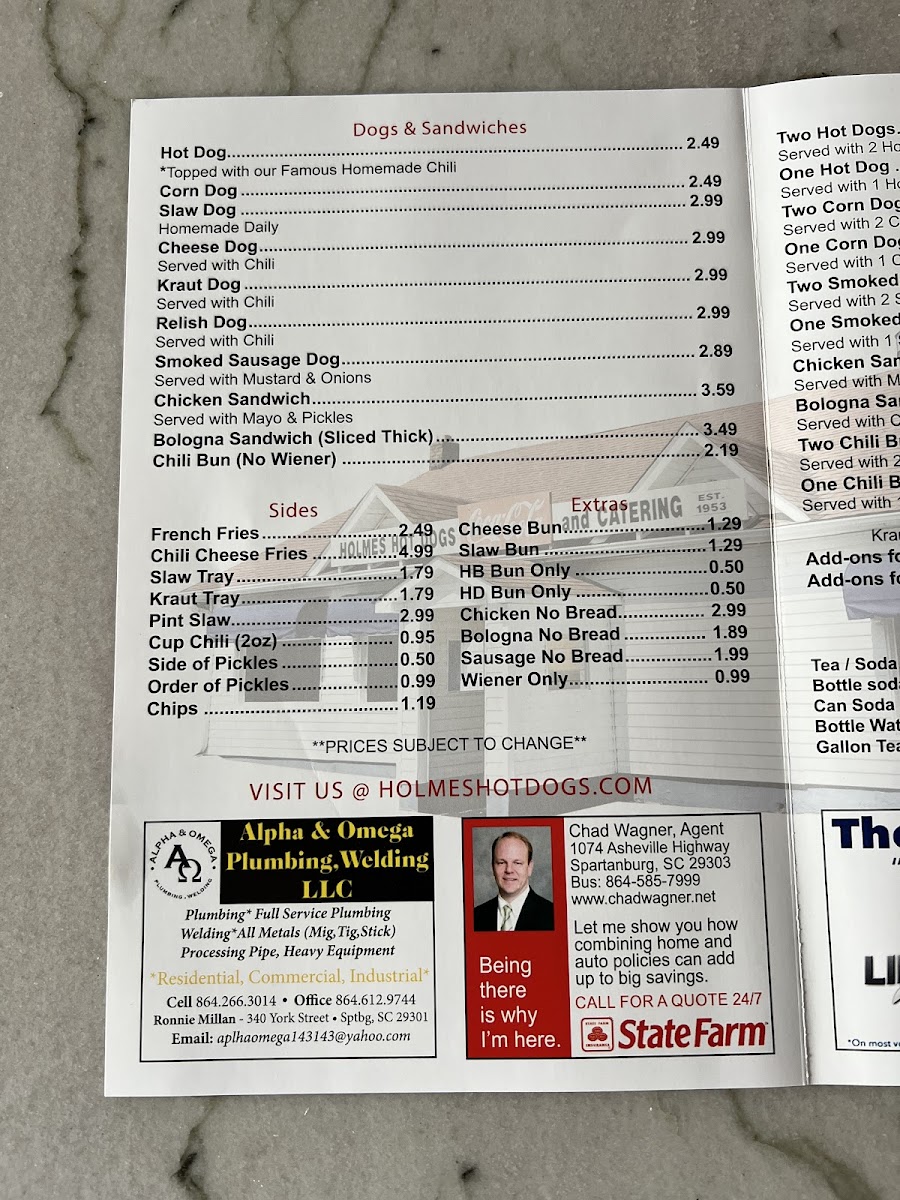If you’re looking for a spot where comfort food meets great taste, Holmes Hotdogs & Catering Menu has got you covered. Located at 925 W Blackstock Rd, Arcadia, SC, this place is all about classic flavors with a twist. Whether you're stopping by for a quick bite or catering a special event, their menu is packed with hearty hotdogs, mouth-watering sides, and dishes that hit just the right spot. From loaded dogs to savory treats, there's something for everyone. The vibe is laid-back, so you can enjoy your meal just the way you like it - no rush, no fuss. Every bite brings you closer to that perfect comfort food experience, and the menu is as satisfying as it gets. So, if you’re in the area, make sure to swing by and see what all the buzz is about!